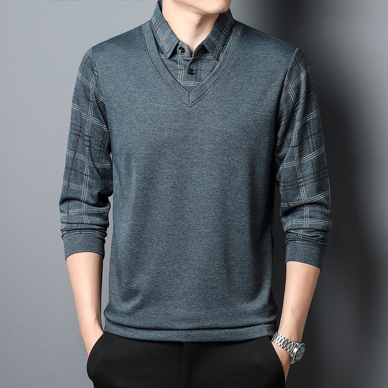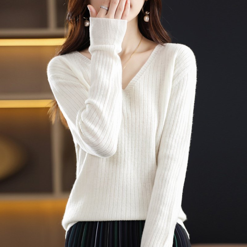 V-Neck Pull-Over Striped Gentle Sweater Base Shirt